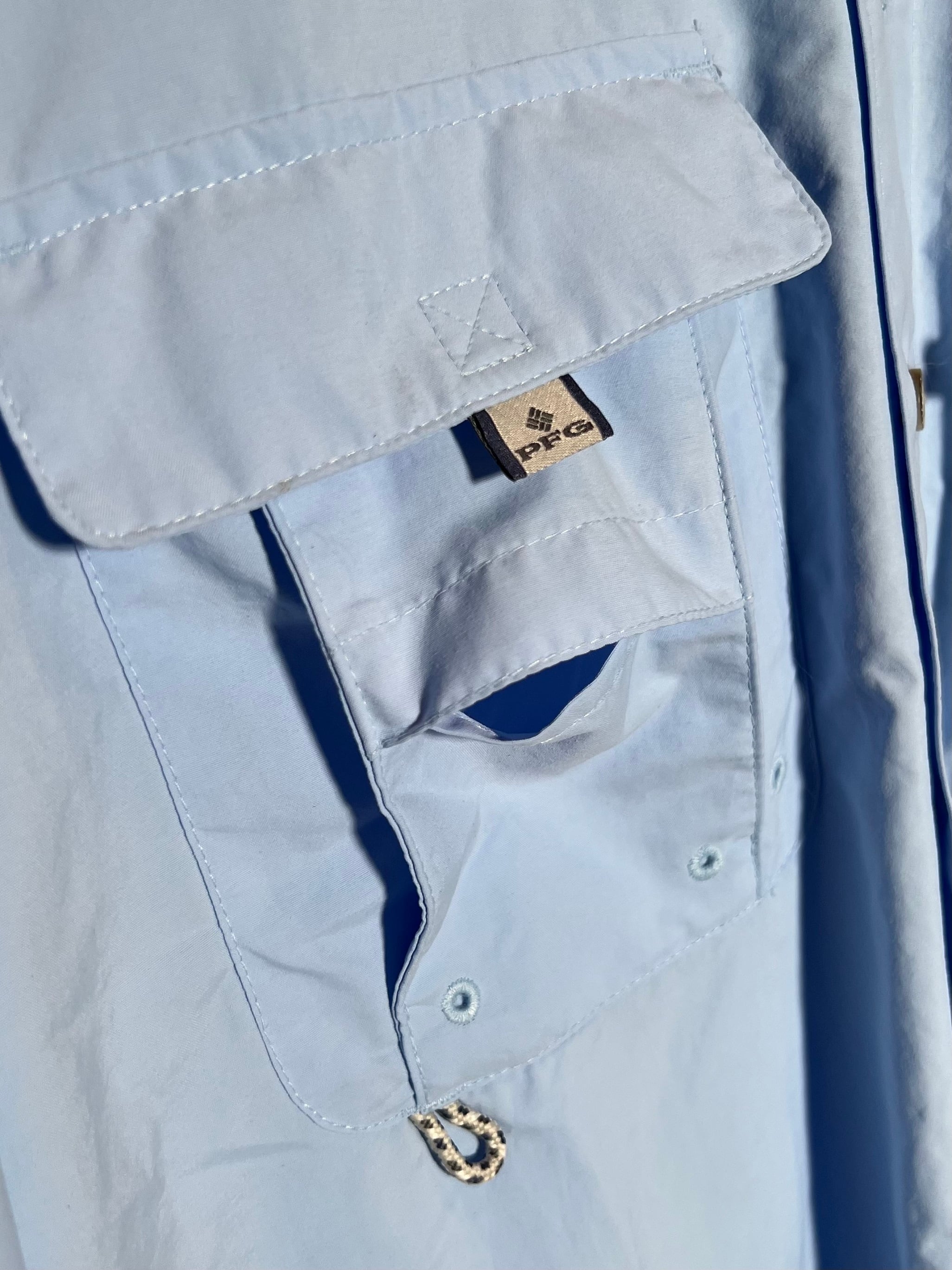 胸元は特徴的なクラシカルなデザインとトレンド感のあるゆったりとしたリラックスフィットで、フィッシングはもちろん、キャンプなどの夏のアウトドアアクティビティや街着としても人気のあるアイテムです。