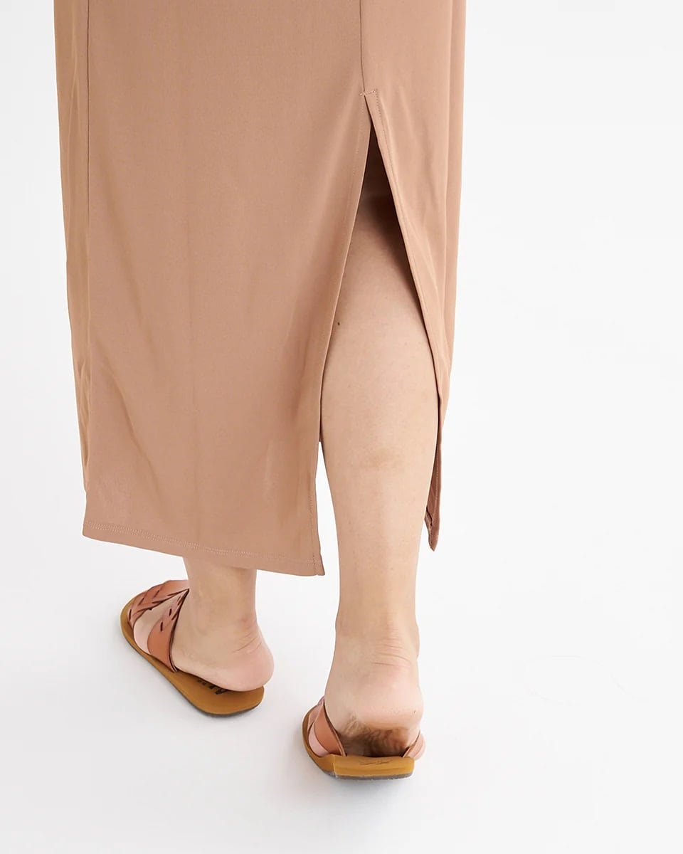 前後どちらでも着られる2WAY仕様なのが特徴です。バックにはスリットを入れているので脚捌きも快適です。サイドポケット付き。UVプロテクション(UPF50+)付き。