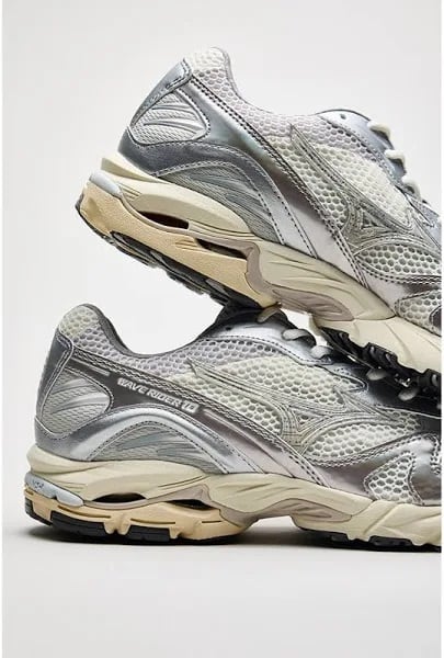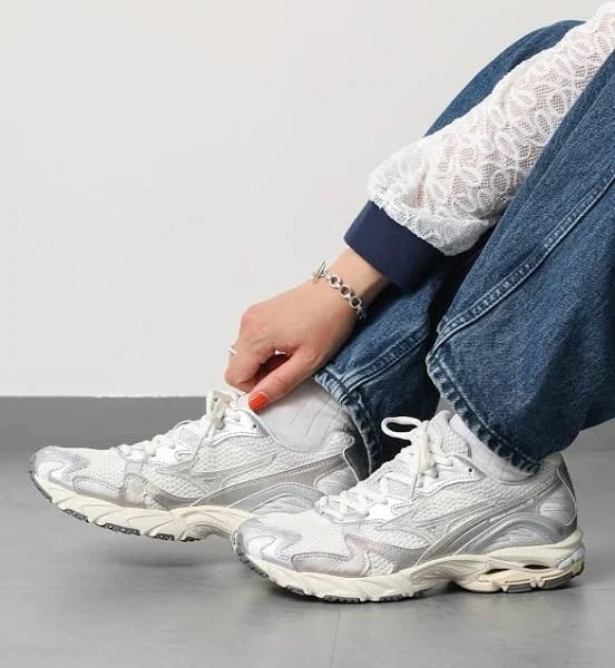 ミズノの定番「WAVE RIDER 10」がOGデザインを現代風にアレンジ。波形ソールでクッション性と安定性を両立し、軽量で快適な履き心地を実現。どんなスタイルにも合う一足です。