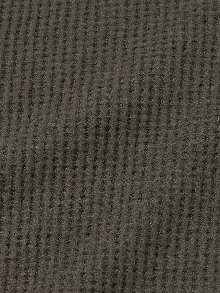 凹凸のあるワッフル生地特有の通気のよさが特徴で、生地と体の間に空気の層を作り出し体温を逃がしにくいため、暖かさも確保。肌面に起毛を施すことで柔らかな肌触りとしなやかな着心地を追求しています。リサイクルポリエステルとポリウレタンを混紡した生地は適度なストレッチ性を備え、洗濯もしやすいイージーケア。