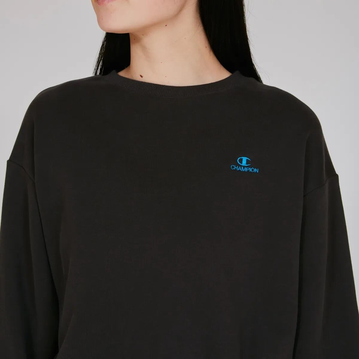 左胸にはボディカラーごとに異なる色のCロゴと、細いブロック書体による「CHAMPION」の刺繍入り。