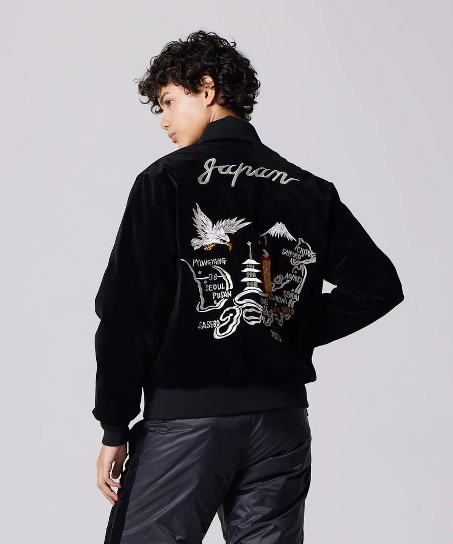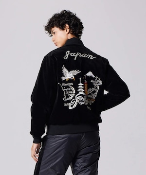 ・表地には、ベロア生地に前後スカジャン風の刺繍を入れています。