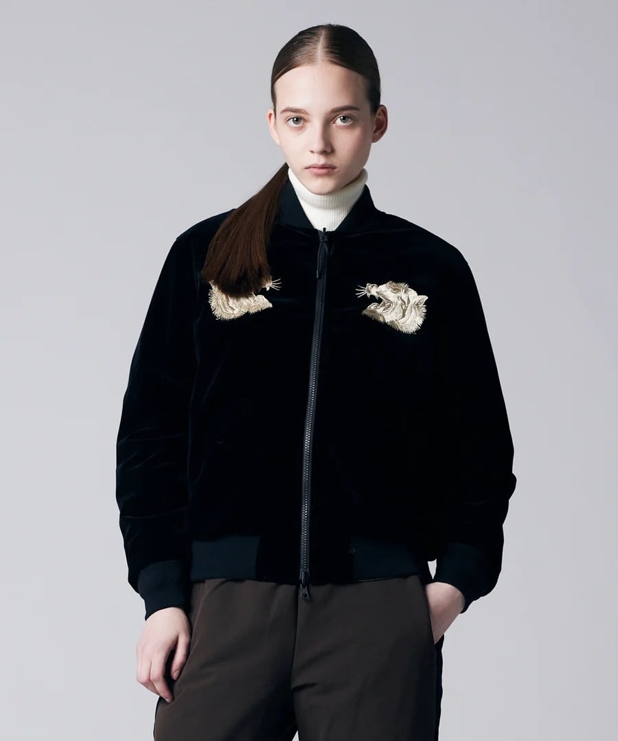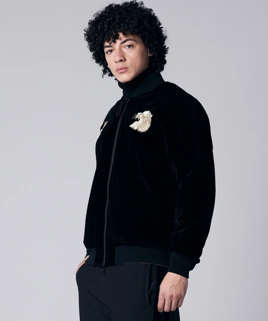 ・表地には、ベロア生地に前後スカジャン風の刺繍を入れています。