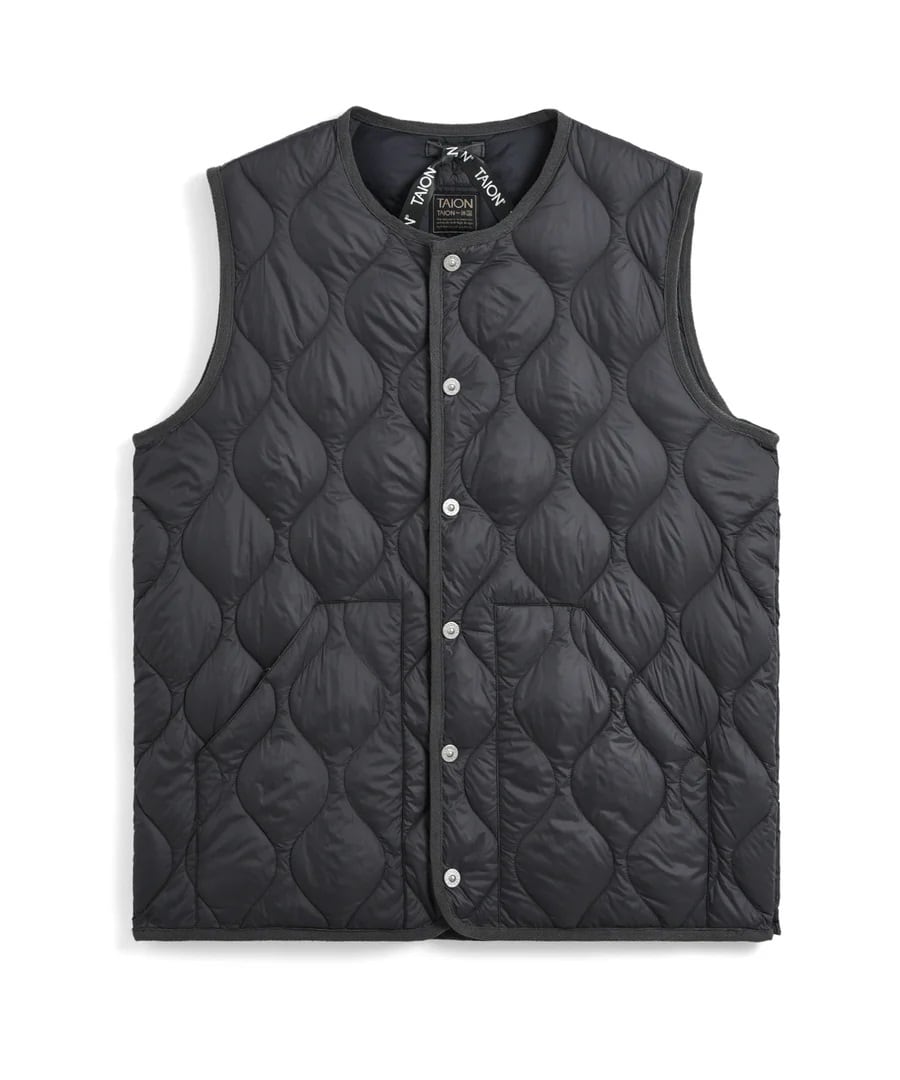 TAION (タイオン) - MILITARY CREW NECK DOWN VEST (ミリタリークルーネックダウンベスト) ユニセックス ダークチャコール