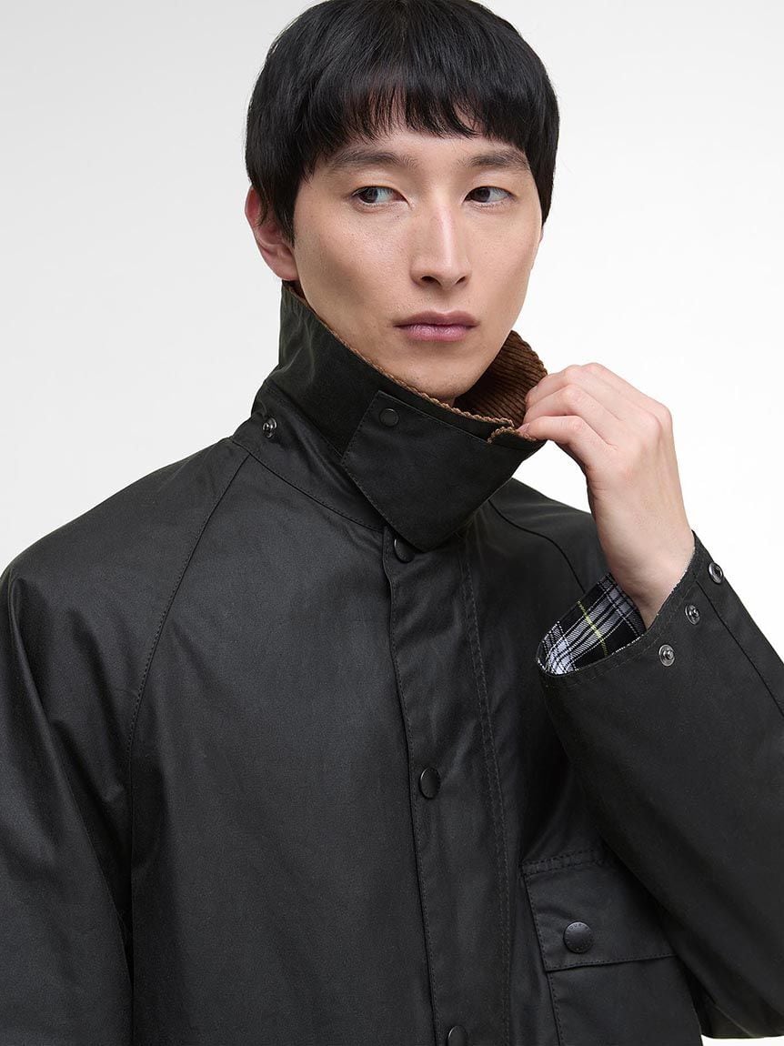このリモデルでは、6オンスのワックスドコットンに、クラシックタータンの袖裏、そして温かみのあるコーデュロイカラーを組み合わせ、バブアーの象徴的なスタイルを現代的に継承しています。