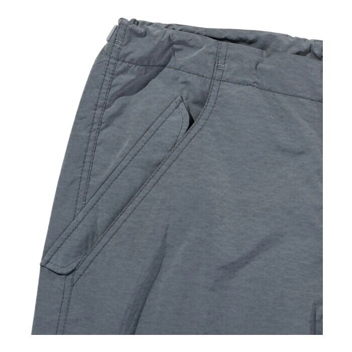 高芭度でハリコシのある素材はCO撥水、シレー加工を付与しているので、機能面にも充実したポトムスになっている。