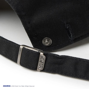 シルエットはフロント部分に芯がなく柔らかな被り心地が特徴。フロントパネルのトップステッチをなくし、スウェットバンドには薄く柔らかいコットンツイルを採用。バイザー(つば)はあらかじめ着用しやすい状態にカーブしています。 イージースナップ(スナップボタンで着脱できるサイズ調整するストラップ)なので、バッグやベルトループなどに簡単に取り付けることができます。頭回り約55.8cmから59.6cmまでサイズ調整が可能です。