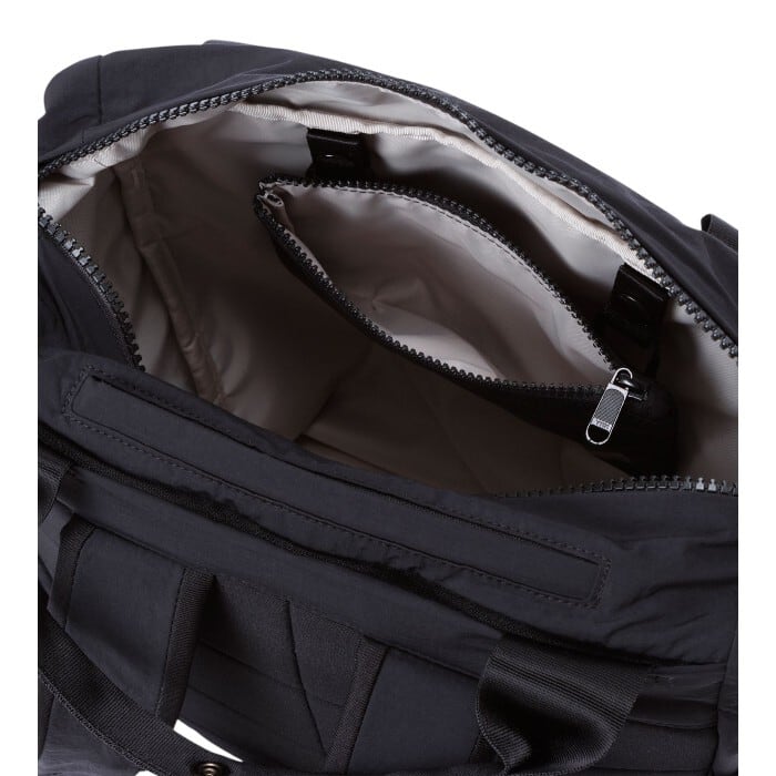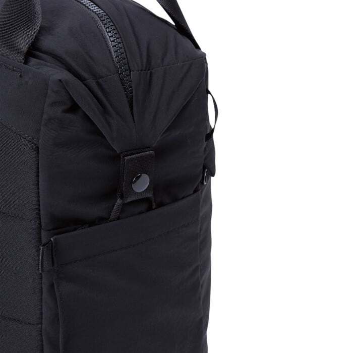 パックとトートの使い方が選べる2WAY仕様のユーティリティパックです。素材は、柔らかいタッチ感をもつ160デニールのリサイクルナイロン。シンプルでクリーンな印象に仕上げ、女性ユーザーの使いやすさを追求しています。メインコンパートメントは、15インチまでのノート型PCが収納できるスリーブを設置。ファスナーポケットは、小型モバイルやサングラスの収納に役立つフリースライニングを装備。さらに、取り外し可能なモデュラーポーチを付属しています。ボトム部には、コーティング補強で耐久性を向上させ、シューズ収納用の専用コンパートメントを配備。日常のさまざまなシーンで使いやすいアイテムです。