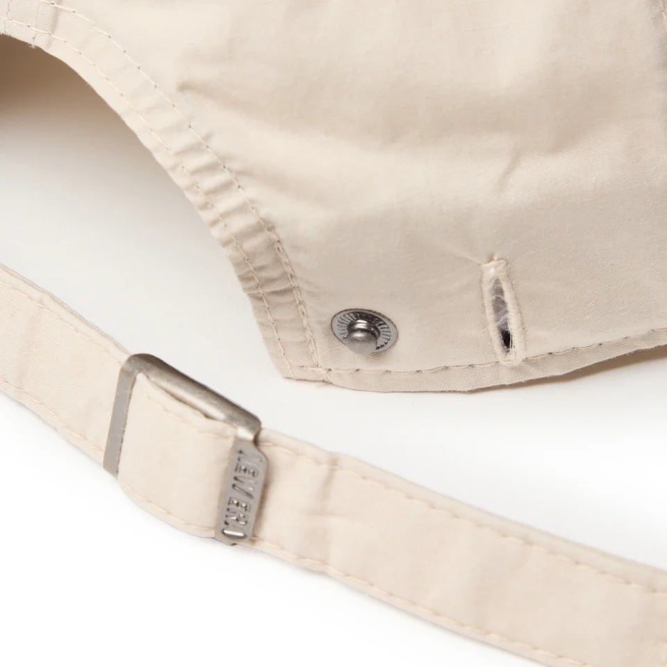 シルエットはフロント部分に芯がなく柔らかな被り心地が特徴の9TWENTY。リアのクロスストラップ(サイズ調整するストラップ)でサイズ調整が可能。