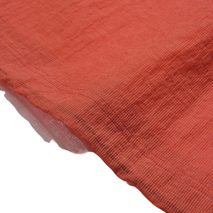 軽い撥水性を持つファインメッシュ素材は、透けるほどの薄さで、インナーの色やプリントがうっすら浮かぶ抜け感もポイント。
