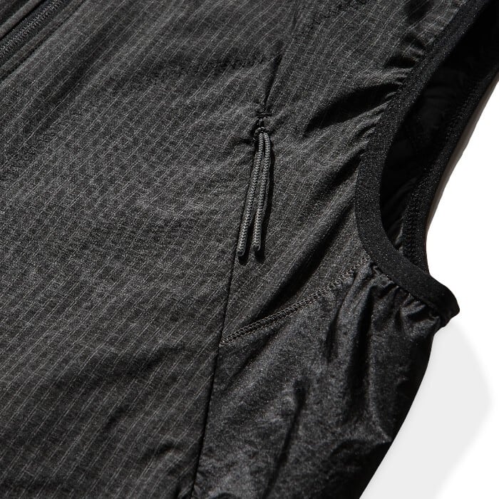 Numb Pinstriped Commuting Vestは、軽量で防風性に優れたピンストライプ柄のブラックカラーのベストです。