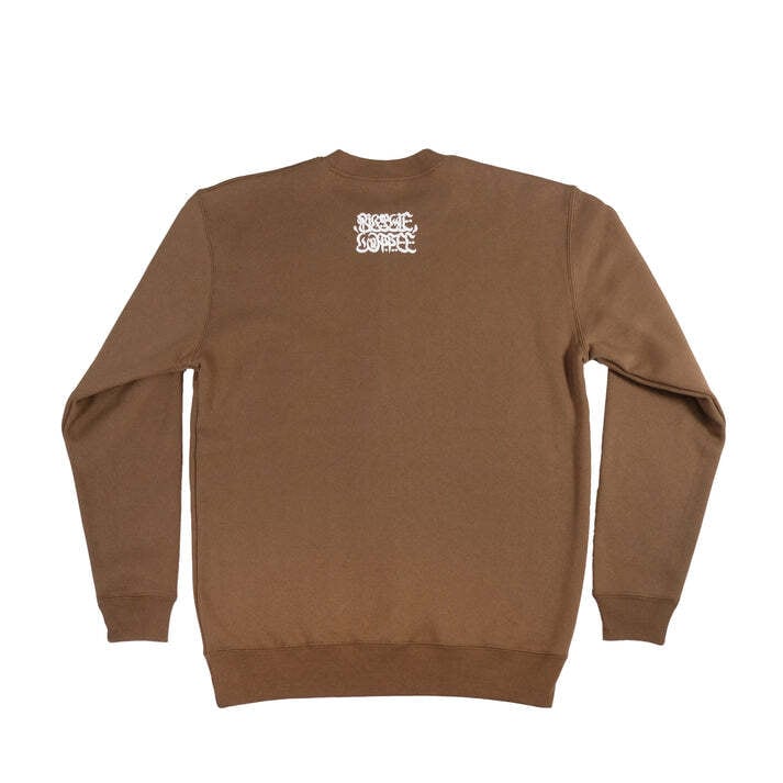 アーティストのKHARTが描き下ろした水出しコーヒーの持ち帰り用の瓶"Growler"を配したクルーネットスウェットです。