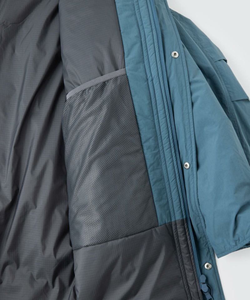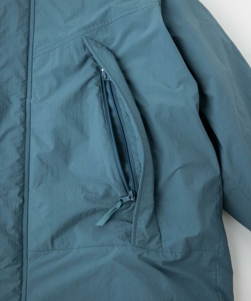 表地に非フッ素高耐久撥水加工CZEREXを施したハリ感のあるCORDURA NYLON、中綿にCLIMASHIELD COMBATを使用。 メンズとは違いフロントは音が鳴りにくく引っ掛かりを起こさないドットボタンを採用。