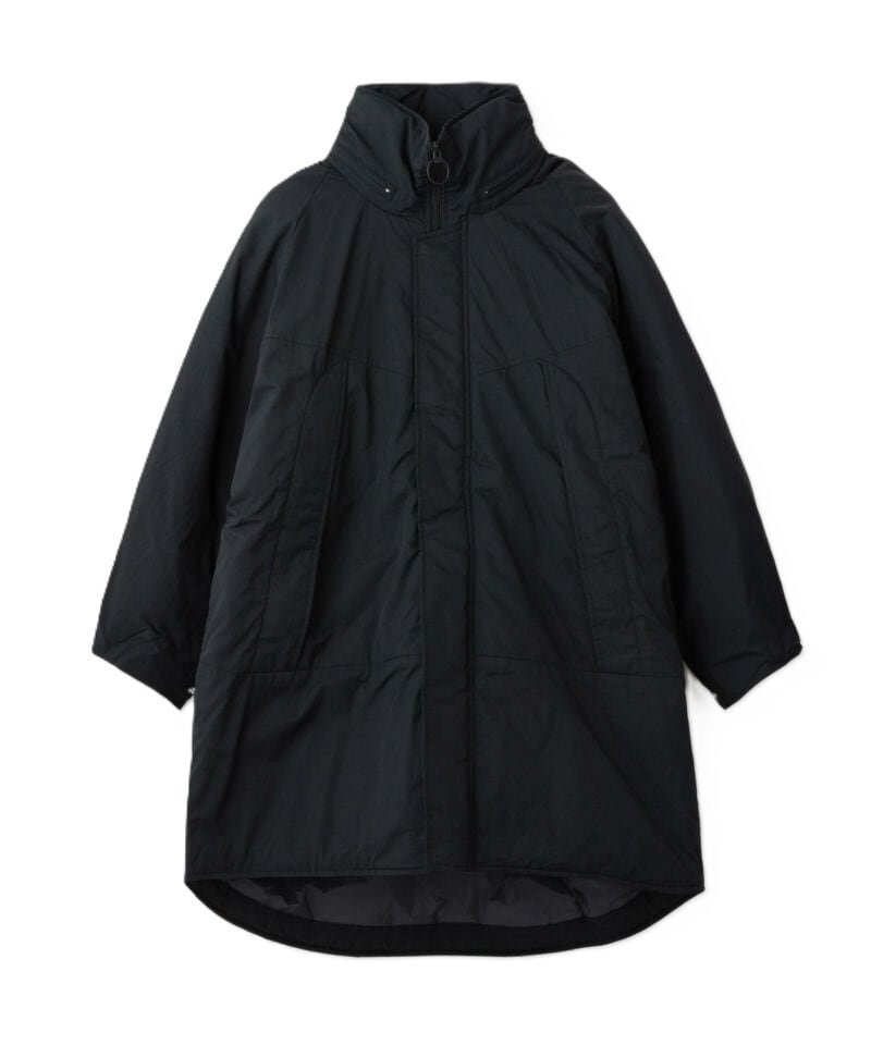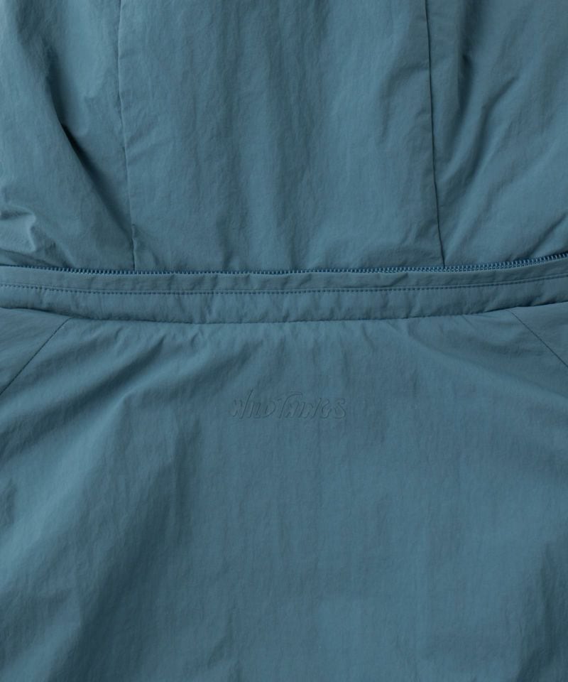腕のベルクロワッペンもなくし、前ファスナーのスライダーをリング型にすることでミリタリー感を軽減。 袖口リブのインナーカフスが風の侵入を防ぐ。 ロゴも主張を控え、後ろ身の衿下に生地と同色でプリント。 近年の日本の気候や、レイヤードのし易さ、収納性に配慮し中綿量を調整することで、オーバーサイズながら膨らみすぎないスッキリしたシルエット。 ウエストはドローコード採用でシルエットの変更が可能。