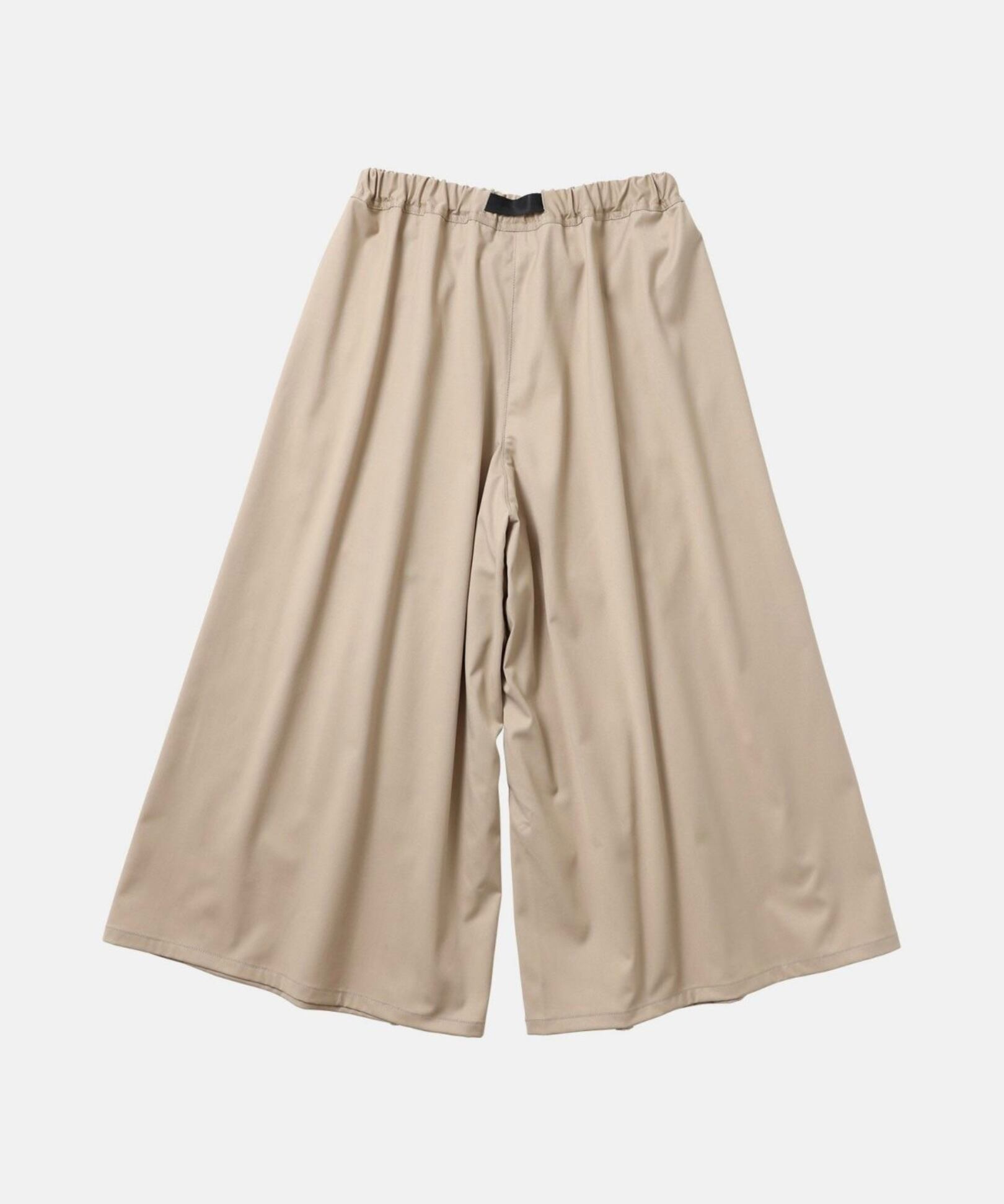 フロントに取り入れた深いタックに加え、スカートのようなワイドシルエットのパンツです。素材から生まれる光沢感とドレープが特徴で、ポリウレタンによる伸縮性も兼ね備え、タウンユースはもちろん、現代のライフスタイルに適したアイテムです。